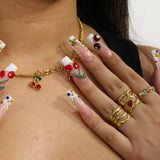 Anillo geométrico de piedra roja